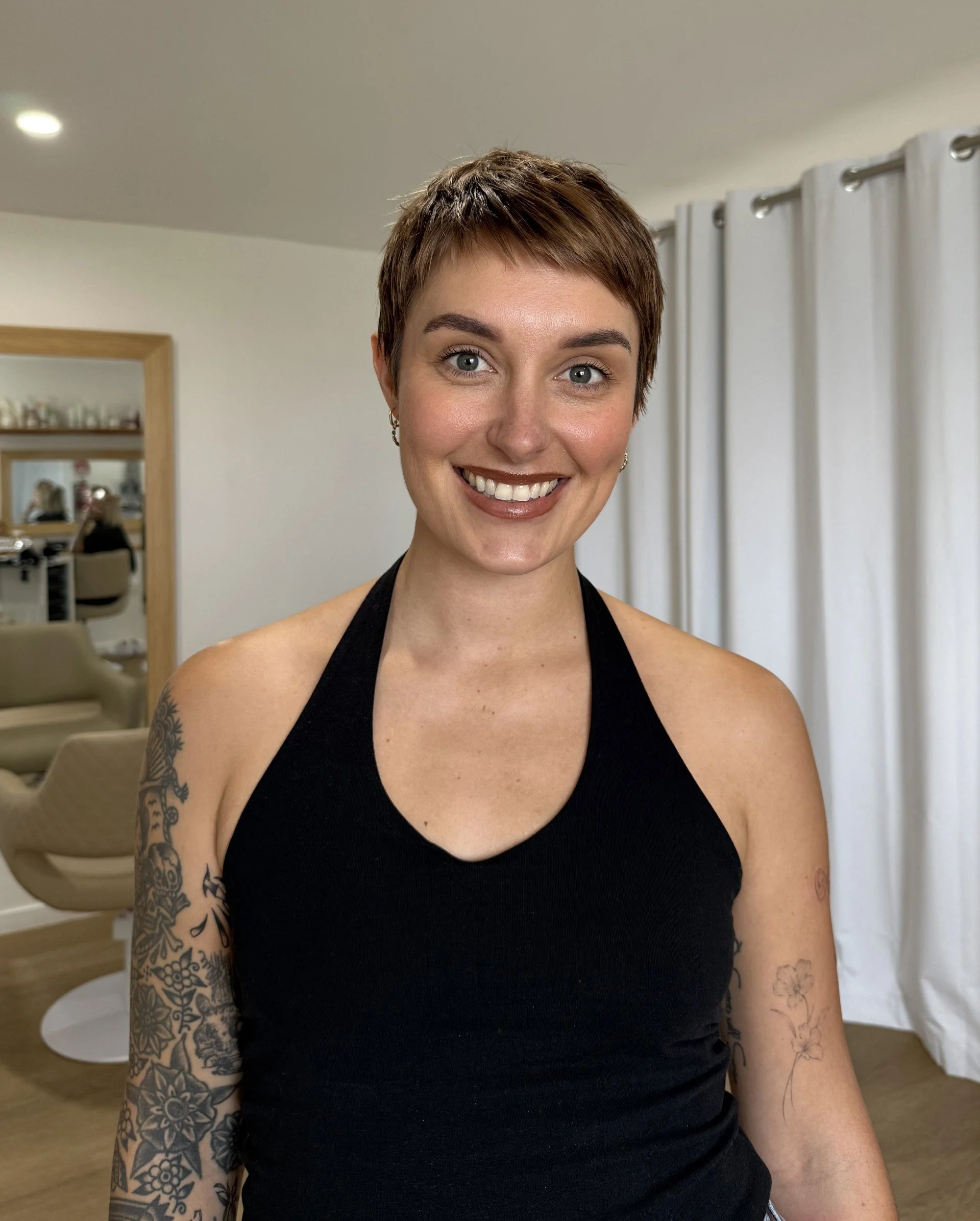 With over 16 years of experience, I’ve learned that great hair is about more than just the cut or colour—it’s about how you feel. I love empowering my clients to achieve their dream hair because it’s often a reflection of what’s going on inside. Whether it’s a bold blonde transformation, a fresh precision cut, or a natural, glowing makeup look, I’m here to help you feel confident, seen, and totally yourself.